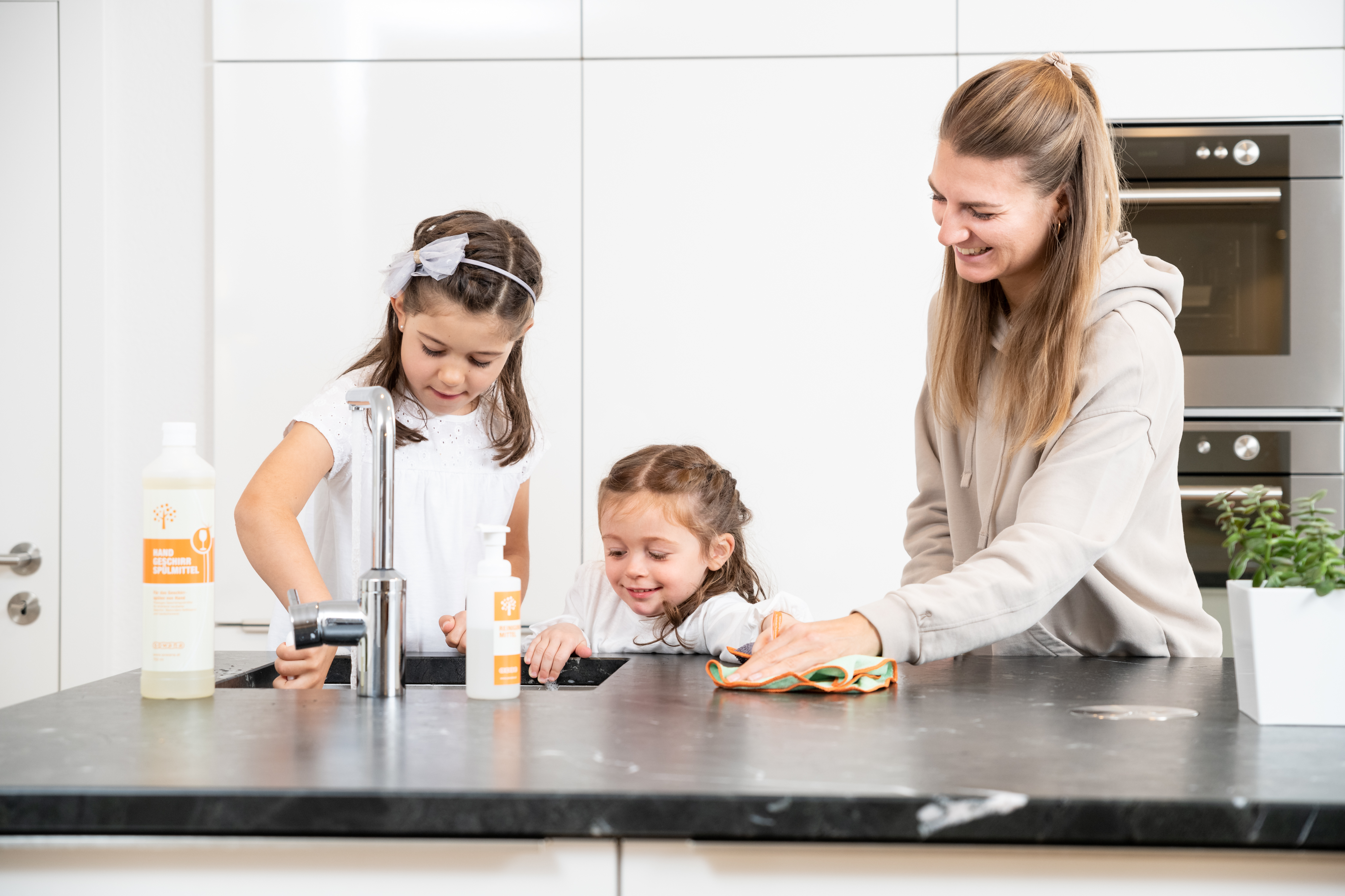 Abwasch-Set. Abwasch-Set bestehend aus: Abwasch-Tuch, Handgeschirrspülmittel (750 ml). statt € 33,70
